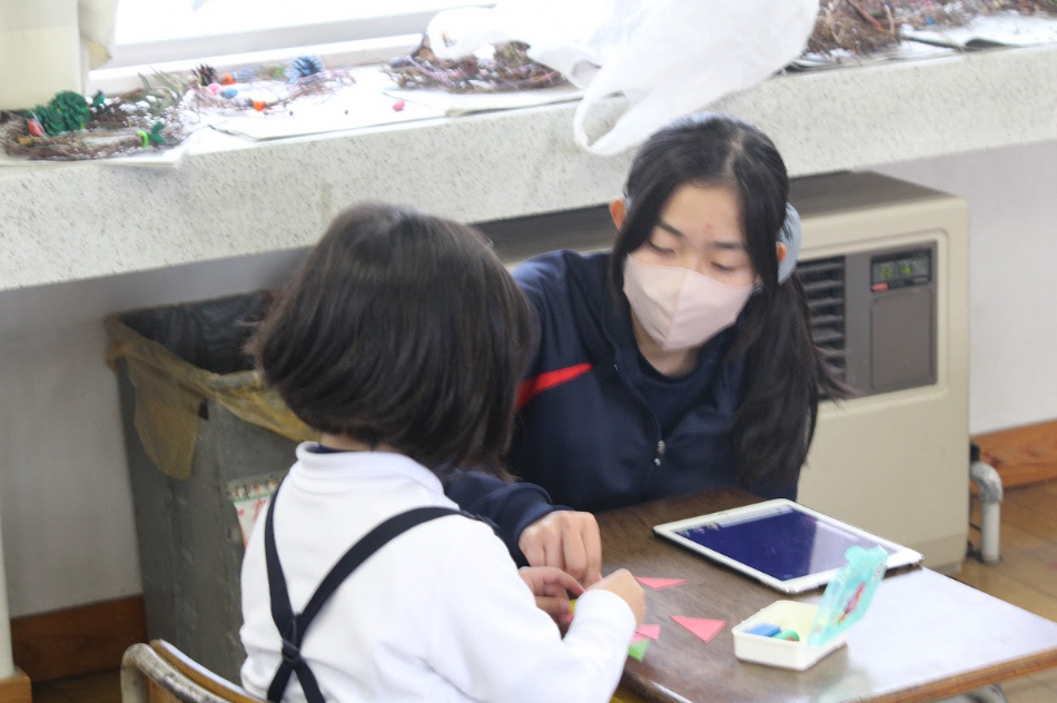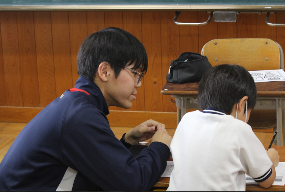 小学校の授業と休み時間をお手伝いし、学習支援を体験する活動で、第2回の今回は、1、2年生が参加しました。