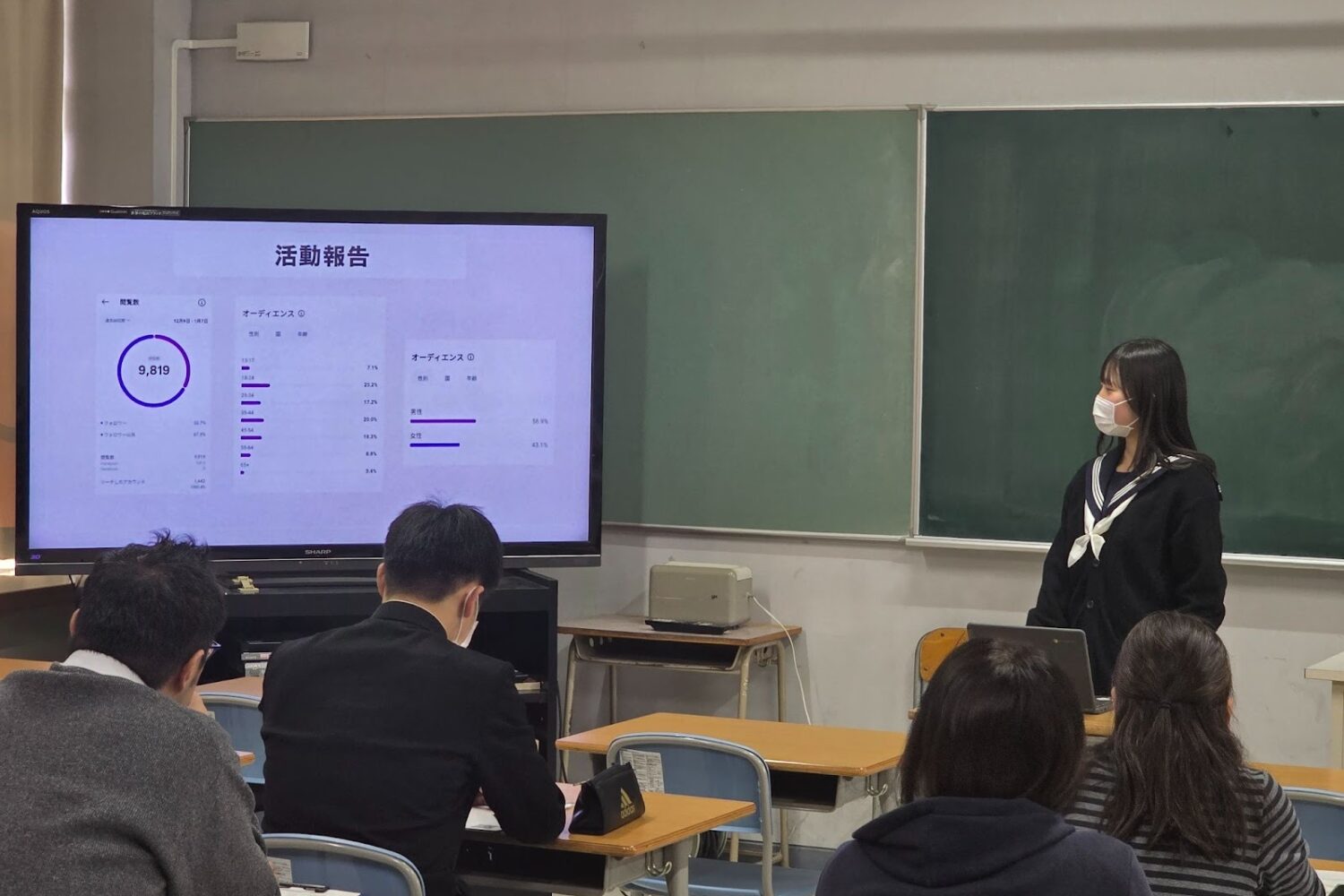 2年生は5月からの約9か月間、自ら設定した問いに対して調査や分析を重ねてきました。発表会では、その集大成として一人ひとりが制作したスライドを使い、プレゼンテーションを行いました。
